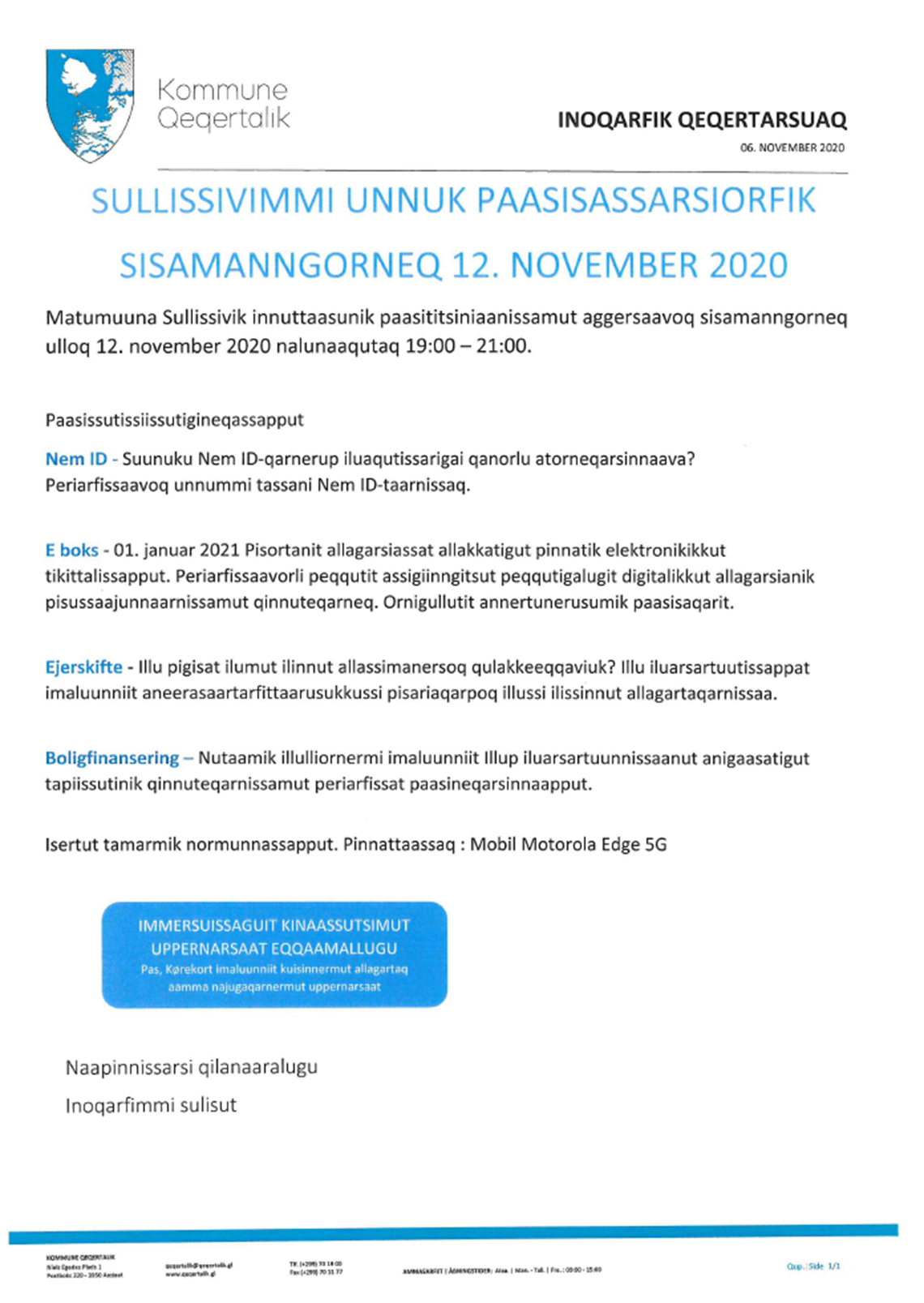 SULLISSIVIMMI unnuk paasissassarsiorfik Qeqertarsuaq.