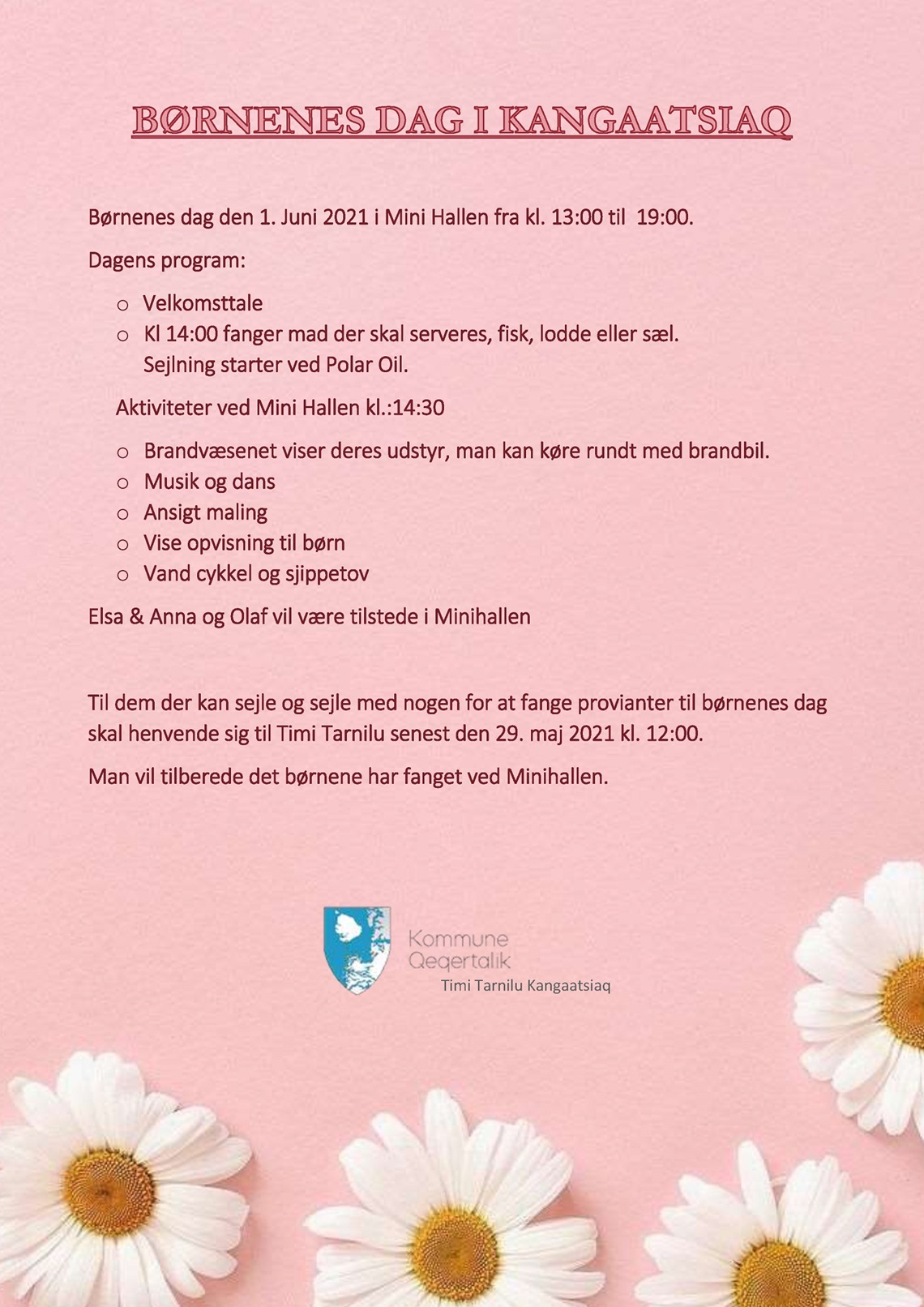 Kangaatsiap atuarfia og bygdeskolerne i Attu, Iginniarfik, Ikerasaarsuk, Niaqornaarsuk afholder børnenes dag ved at deltage i en national fælles-gåtur på børnenes dag, 1.juni 2021 kl.10, med dette budskab: ”Ingen barn skal føle sig ensom”