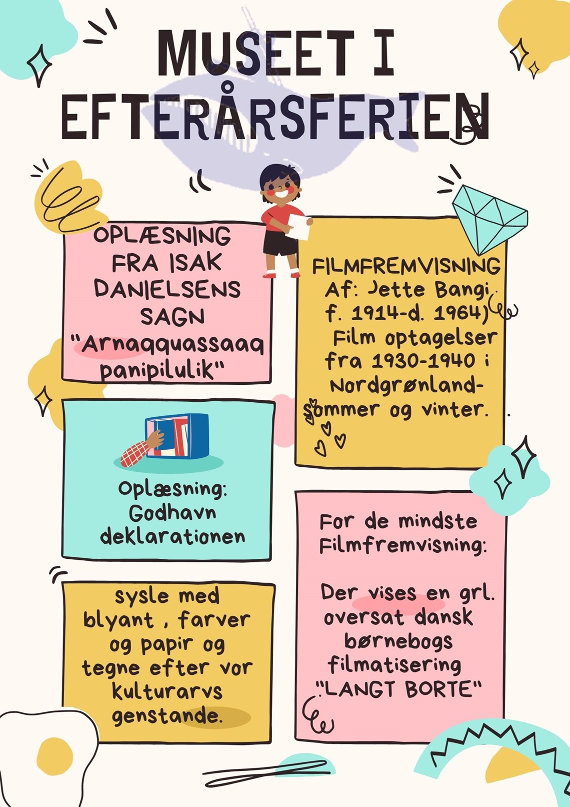 Hvis du kommer forbi museet i uge 41 i tidsrummet 10.00-14.00 så har du mulighed for at opleve lidt kultur. Her vil der være oplæsning samt filmforevisning og kreativ udfoldelse i at tegne og male kulturarvsgenstande.