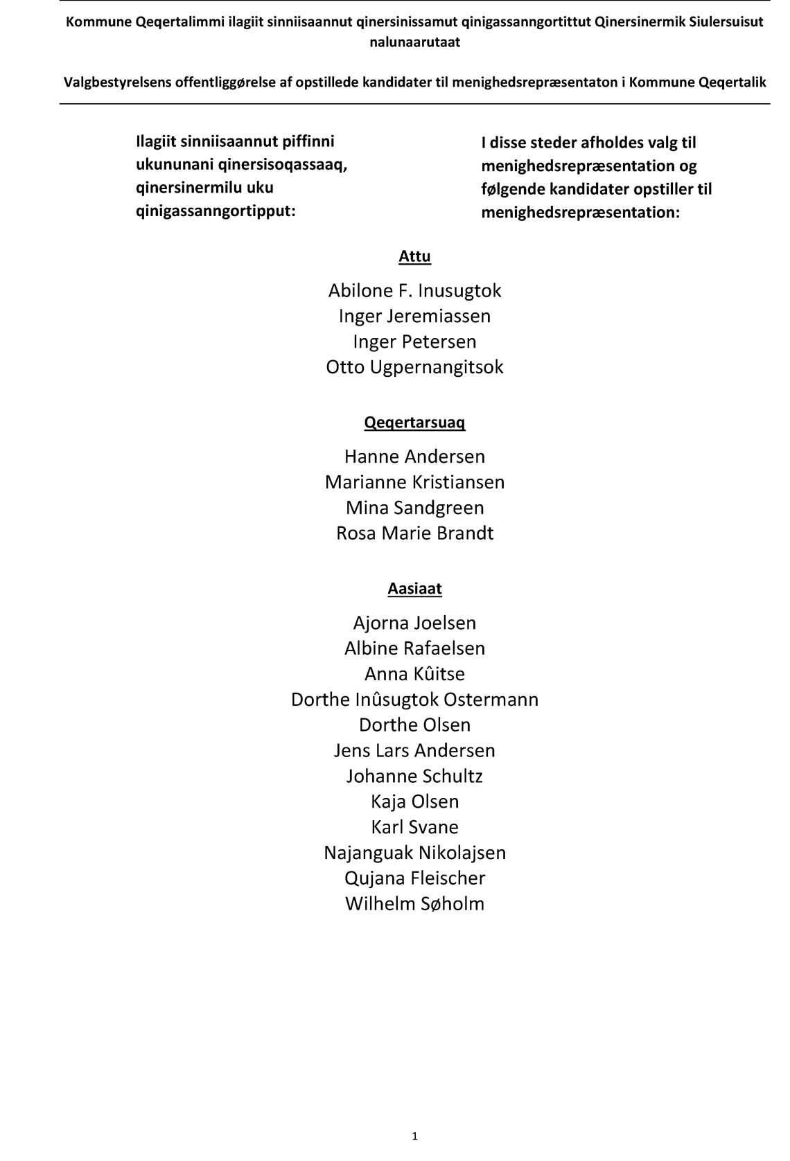 Tirsdag den 6. april 2021 er der valg til Inatsisartut, Kommunalbestyrelse, Bygdebestyrelse og Menighedspræsentationer i Kommune Qeqertalik, i alle valgsteder fra kl. 09:00-20:00.