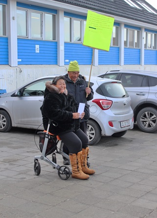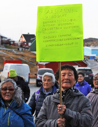 Tirsdag D. 1. Oktober 2019 markerede de ældre i Aasiaat, dagen ved at gå sammen til rådhuset med skilte. De ældre udtaler deres meningstilkendegivelser til Borgmester Ane Hansen og kommunalbestyrelses medlem Enok Sandgreen som er til stede, ansatte i embedsværket, dette skete ledsaget i fællessang.