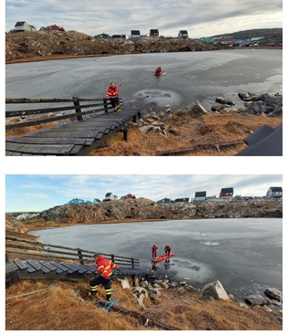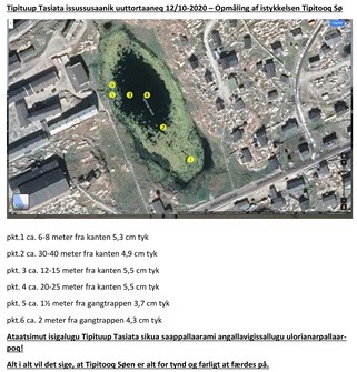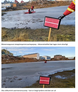 Meddelelse fra Brandvæsenet i Aasiaat: Tipitooq Søen er alt tynd og farligt at færdes på.