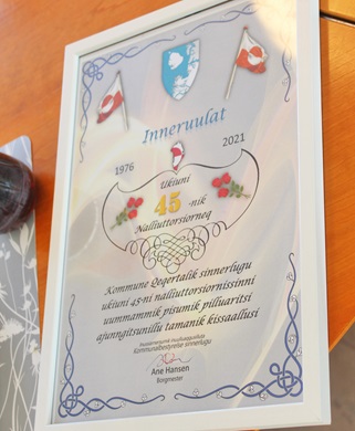 Borgmesteri Ane Hansen-ip nipilersortartut Inneruulat ukiuni 45-nngortorsiorlutik nalliuttorsiortut kommunip allaffissuanut qaaqqullugit ilassivai tunissuteqarfigalugillu.