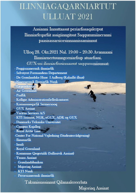 Tamanna pissaaq 28. Okt. 2021 Avannaani ilinniarnertuunngorniarfimmi nal. 19:00 - 20:30.