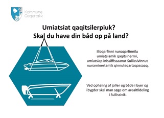 På nuværende tidspunkt er folk begyndt at ophale deres joller og både, derfor anmoder vi befolkningen om at søge arealtildeling til kommunens Servicecenter Sullissivik.