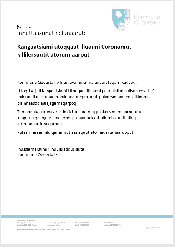 Kangaatsiami utoqqaat illuannut pulaarsinnaanermik killilersuineq atorunnaarsinneqarpoq.