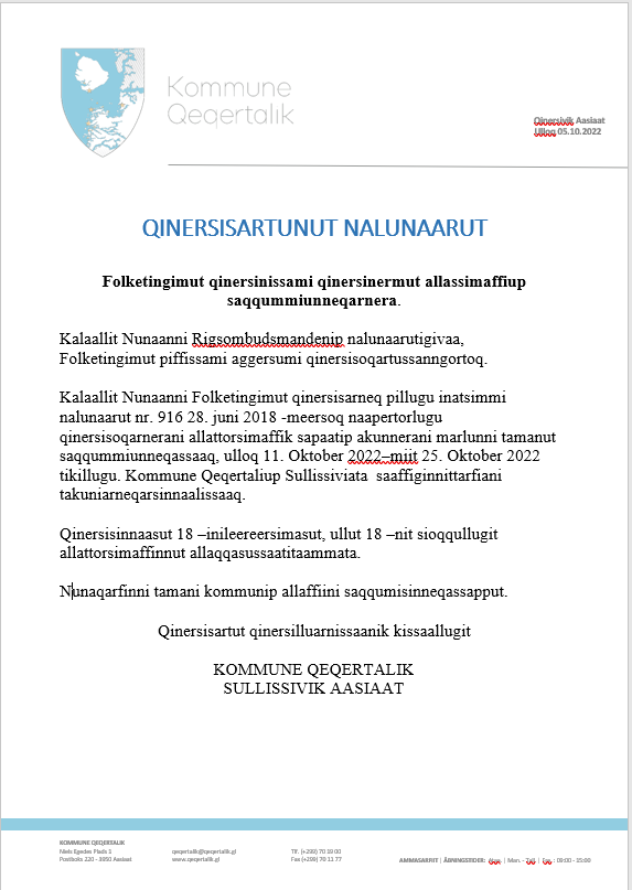 Folketingimut qinersinissami qinersinermut allassimaffiup saqqummiunneqarnera