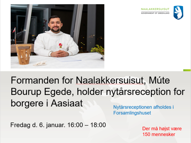 Formanden for Naalakkersuisut, Múte Bourup Egede, holder nytårsreception for borgere i Aasiaat