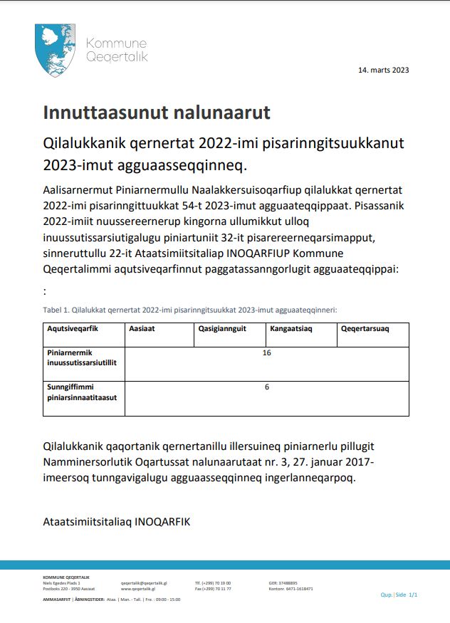 Qilalukkanik qernertat 2022-imi pisarinngitsuukkanut 2023-imut agguaasseqqinneq