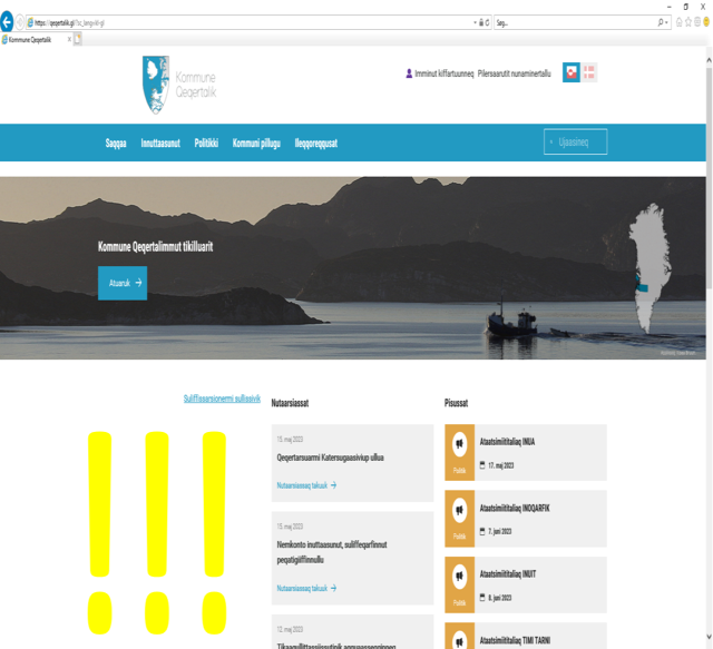 Ataasinngorneq 15. maj 2023 paasineqarpoq Kommune Qeqertallip nittartagaani, atorfiit allagarsiussanut qupperneq nanineqarsinnaajunnaarsimasoq.