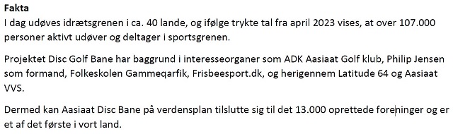 Dermed kan Aasiaat Disc Bane på verdensplan tilslutte sig til det 13.000 oprettede foreninger og er et af det første i vort land.