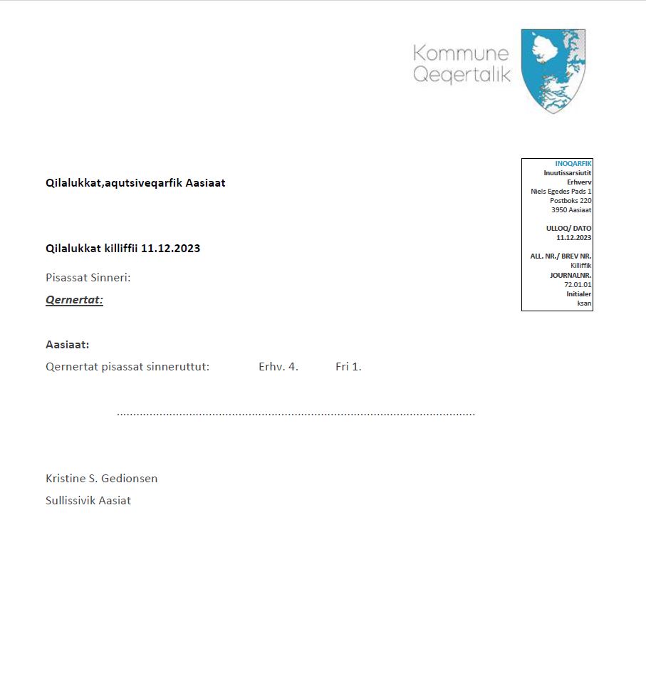 Status over narhvaler i forvaltningsområdet Aasiaat 11/12-20