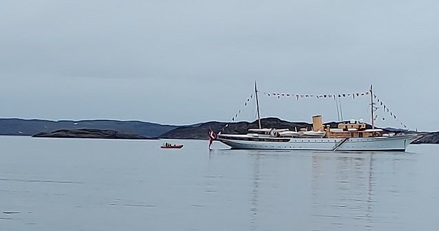 Efter afsløringen gik Kongefamilien til skibet Dannebrog. Her sejlede De videre til Qeqertarsuaq.