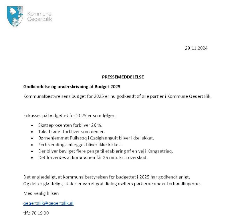 Godkendelse og underskrivning af Budget 2025