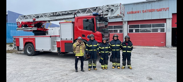 Fem brandmænd fra Aasiaat brandstation har i dagene 9. og 10. august 2025 gennemført to dages kursus i kørsel og betjening af en 32 meter drejestige. De er dermed blevet certificerede som stigehold.