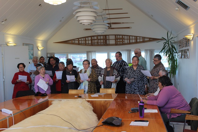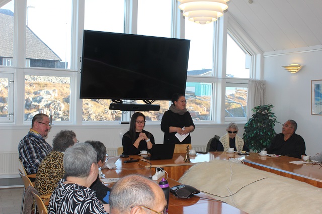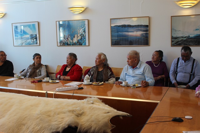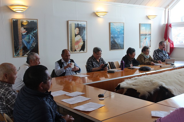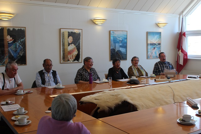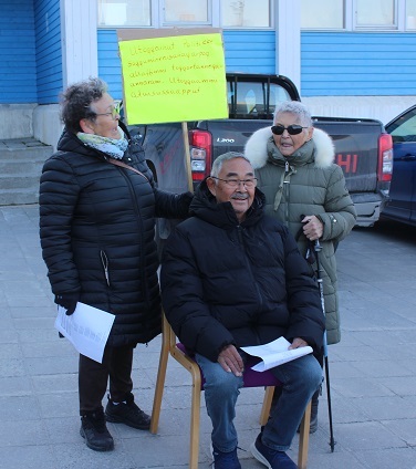 Da Aasiaats ældreforening Iparannguaq kom udenfor kommunens bygning, og vejret var efterårsagtigt og meget koldt, inviterede borgmesteren dem straks indenfor i mødelokalet. Ved ankomsten sang de ældre i fællesskab sangen “Aqqutissaq nalunartoq” for at mindes en afdød medbeboer fra demensafdelingen på plejehjemmet i Nuuk.