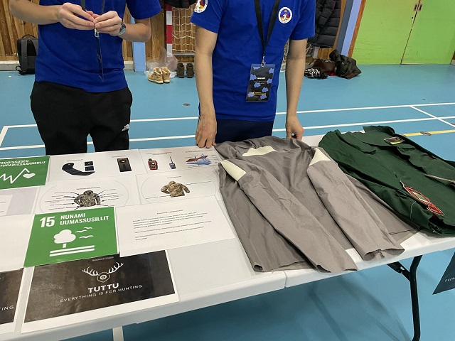 De præsenterer innovative og visionære idéer. Under selve udstillingen og de små interviews har jeg både fået ny viden og lært en masse. For eksempel præsenterede eleverne fra Sisimiut et stykke tøj – en annoraaq, som kan bruges, når man er ude at jage. Den er ikke for tyk, den er let, og den kræver ikke ekstra udrustning. annoraaq har indbygget lygte, GPS, radio og en lille drikkeflaske. Der er gode lommer, så man ikke behøver at bære en ekstra rygsæk.