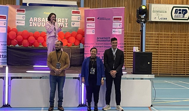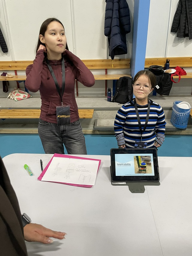 De unge fra Arsarnerit viser deres projekter frem i hallen og konkurrerer mod hinanden. Der bliver budt velkommen af Inaluk Lange Olsen og Kommune Qeqertaliks borgmester Simigaq Heilmann, og da også Nukappiaraq Kristiansen (Nukappi) fra Fonden for Entreprenørselskab allerede har budt velkommen, kommer de deltagende elever fra kysten nu frem og præsenterer foran udstillingen.