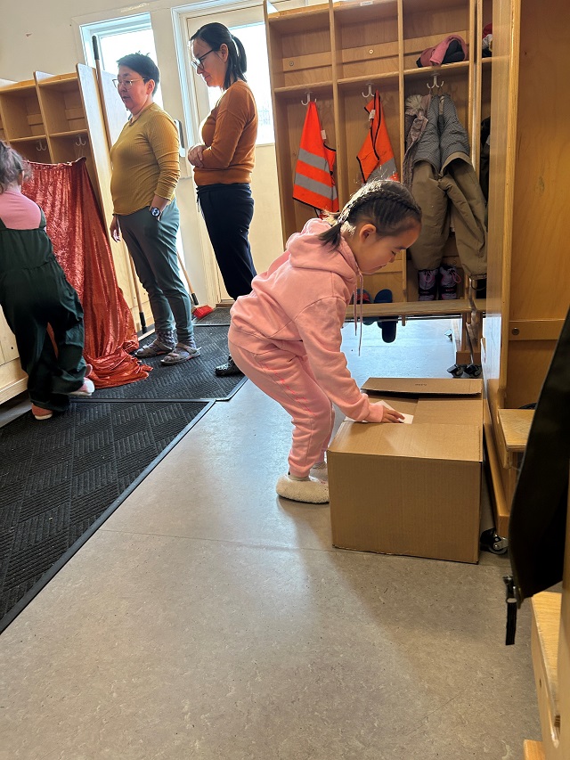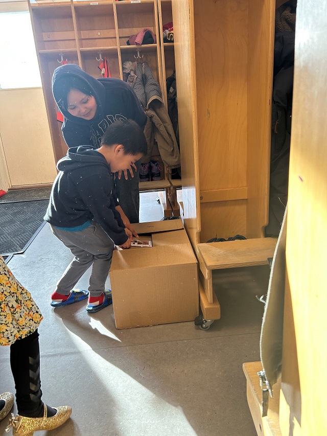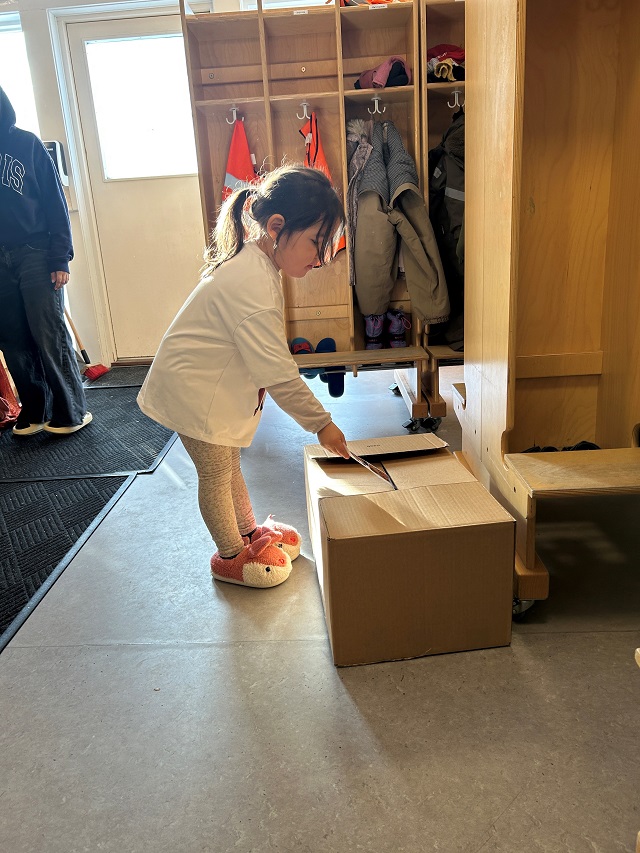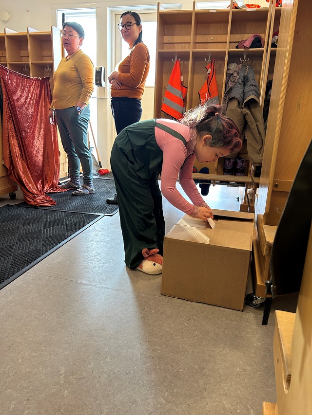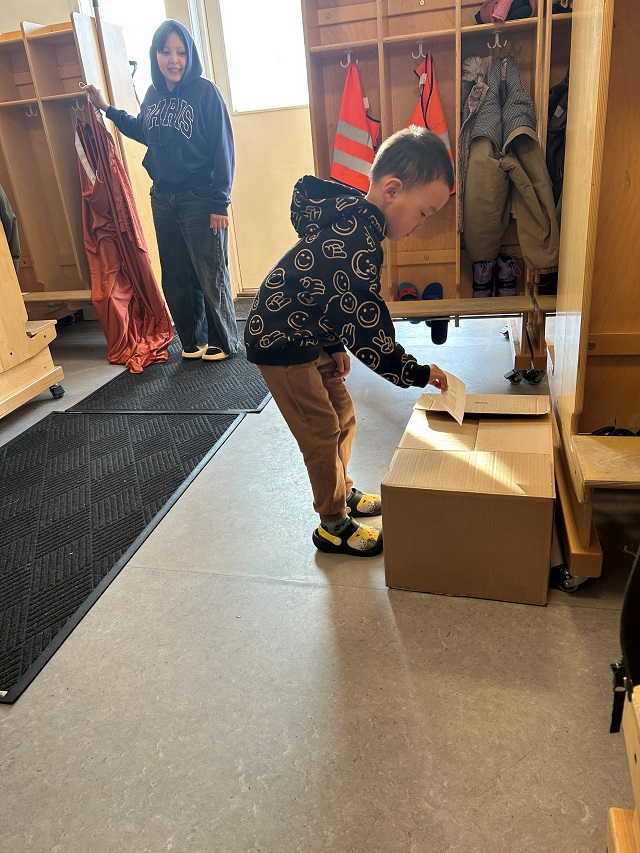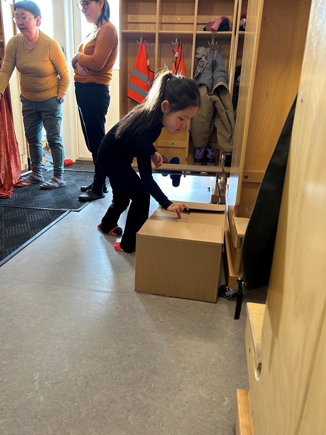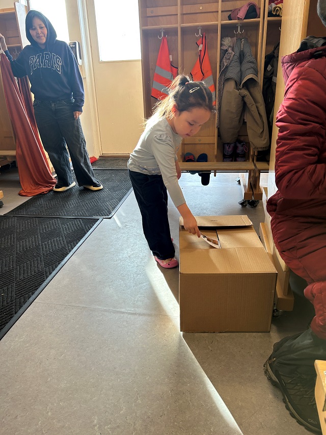 Meeqqerivik ”Kulloq”-mi meeqqat aqangumut nerisassaminnik sutorusunnersut taasitillungit, qiningassat assingiinngittut tallimaapput (assimi ilaapput). Meeqqat qinersiartornerminni siuleriitsinneqarput, tullinnguukkaangata nalliuffii apeqqutingineqartarlutit. Saajumullu isertinneqartarlutik, karsimullu pappiliaq ikitinneqartarluni. Kingorna meeqqat angajulliit peqatigalugit kisitsisoqarluni aqangumut sutortoqassanersoq, inequnaqaat pissamgaararpasillutik.